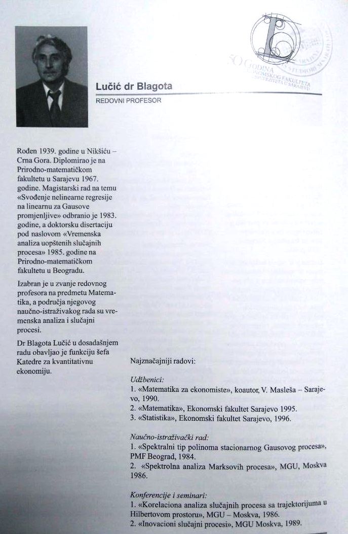 IN MEMORIAM – Prof. dr Blagota Lučić
