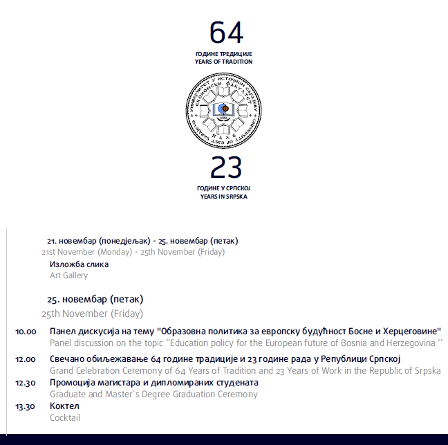 Prije svečanosti biće održana panel diskusija sa temom „Obrazovna politika za Evropsku budućnost Bosne i Hercegovine“ početkom u 10:00 časova (Amfiteatar 3).